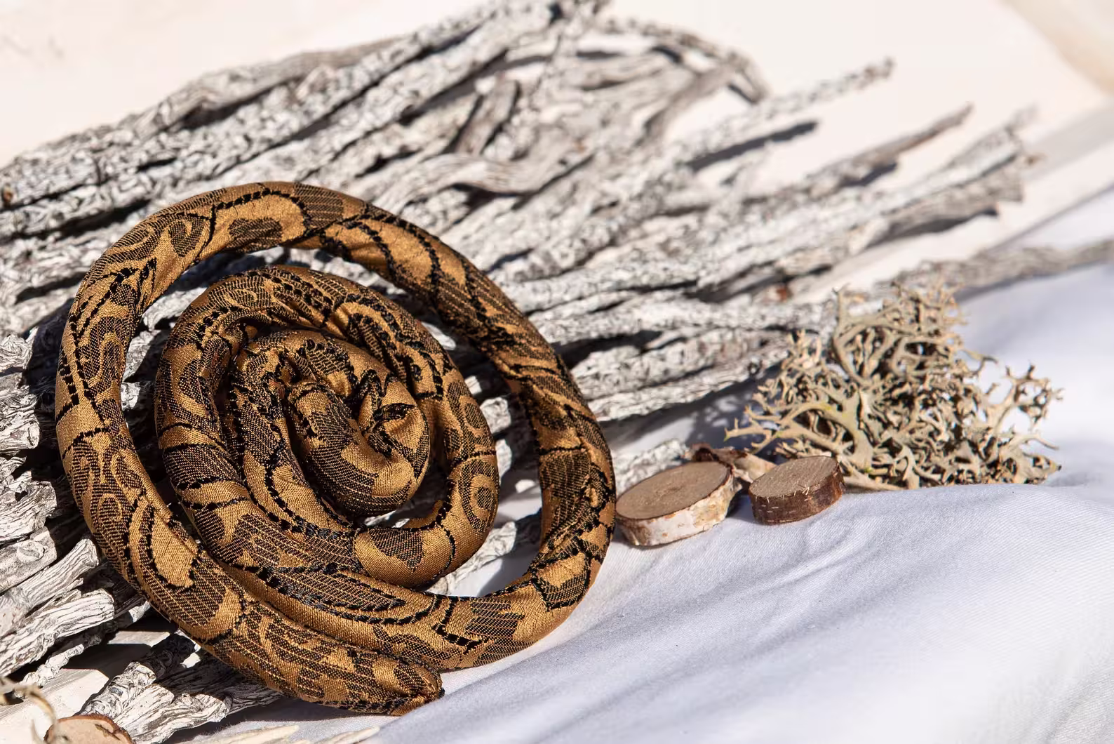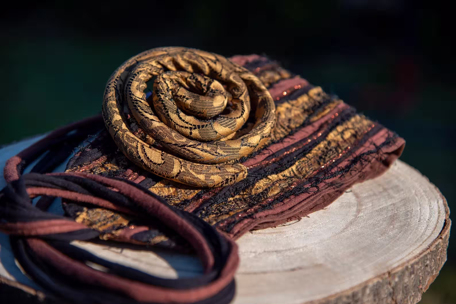 Dreadspirale / Dreadlocks Spirale / Spiralock in der Farbe Gold günstig online kaufen. Alle abgebildeten Dreadlocks Spiralen sind handgefertigt aus hochwertigem Baumwollstoff, gefilzt und gedrahtet.
